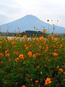 下は大石公園のキバナコスモスと富士山。雪がある富士山が圧倒的に好きなのですが、でも、富士山見るだけでテンションが上がります。