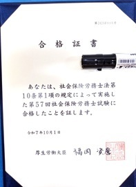 合格証書を嬉しそうに持ってきて見せてくれました。