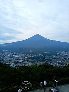 ロープウェイから5分で天上山山頂。ここは風が通りとても涼しくて最高。景観はないのですが木陰の癒される空間でお喋りまくり。この日は曇っていたのに裾野まで富士山がバッチリ見られました。ご褒美ですねぇ。